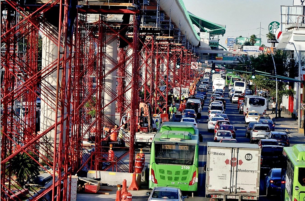 Decenas de estructuras se levantan sobre la Avenida Universidad para reforzar las estructuras elevadas de la Línea 2 del Metro.