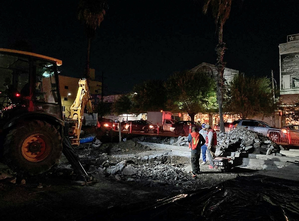 Cuadrillas amplían su jornada laboral para cumplir con el calendario programado en la Calzada Madero.