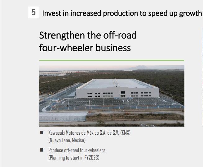 En una presentación, la empresa detalla en las páginas 29 y 30 sus planes para la región de Norteamérica, con una inversión de 30 billones de yenes, equivalentes en ese entonces a 273 millones de dólares, para ampliar una planta en Estados Unidos e instalar otra en Nuevo León, México.