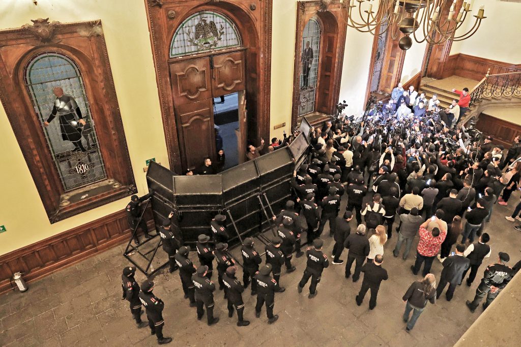 Es un día histórico, pero no deseado, el Palacio estatal se vio copado de policías por pleitos políticos.
