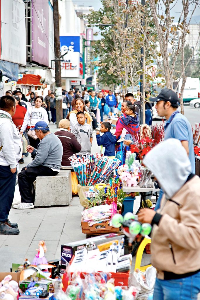 Los puesteros informales aprovecharon las banquetas ampliadas para instalar su mercancía.