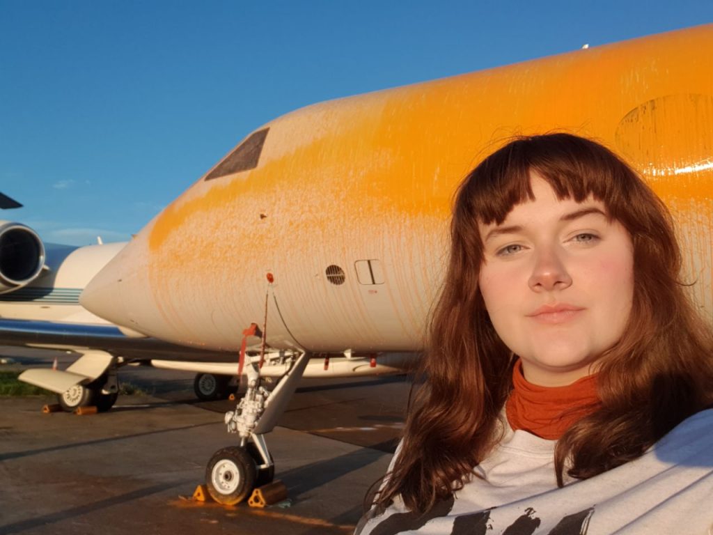 Una joven, hace unas semanas también intentó rociar de ese mismo almidón naranja uno de los jets privados que usa la cantante Taylor Swift en sus cientos de viajes criticados por activistas ambientales.