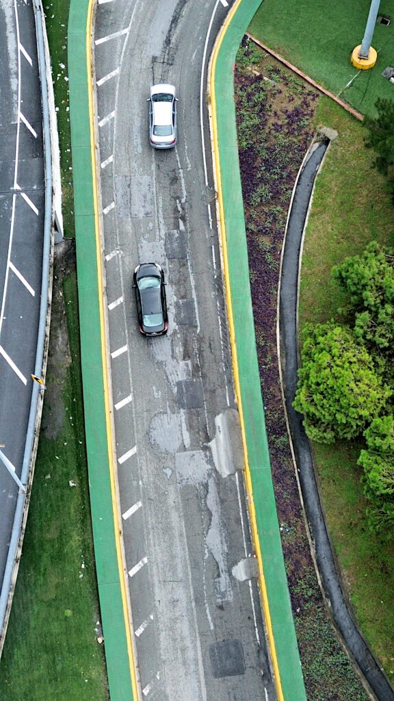 Muchos conductores optan por circular por el carril izquierdo de la conexión, la cual tiene una curva muy pronunciada, sólo para sacarle la vuelta imperfecciones provocadas por el cemento seco.