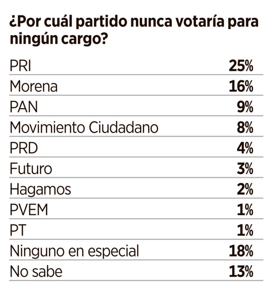 ¿Por cuál partido nunca votaría para ningún cargo?
