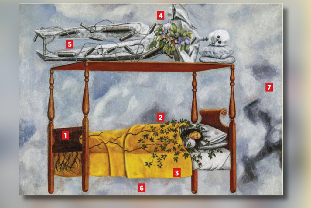 La temática de la obra de Frida Kahlo (1907-1954) gira sobre sus vivencias marcadas por la polio a los 6 años y un grave accidente a los 18, que le causó múltiples fracturas y la impulsó a pintar durante su recuperación.