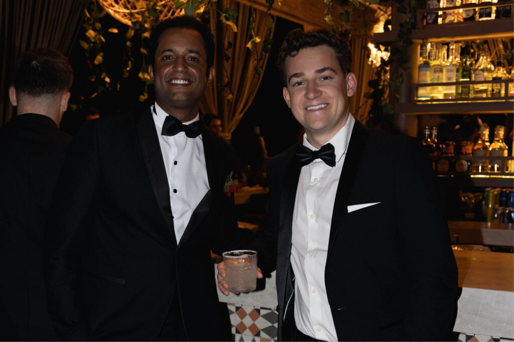 “Briana y Diego les deseamos una vida en conjunto repleta de respeto y entendimiento mutuo, que prevalezca entre ustedes la capacidad de escuchar siempre uno al otro”, expresó el joyero Daniel Espinosa, junto a su esposo, Max Miranda.