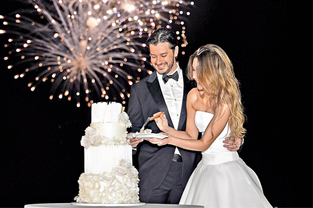 3. Con fuegos artificiales en Playa El Medano, frente al Arco de Cabo San Lucas, los esposos partieron su pastel.
