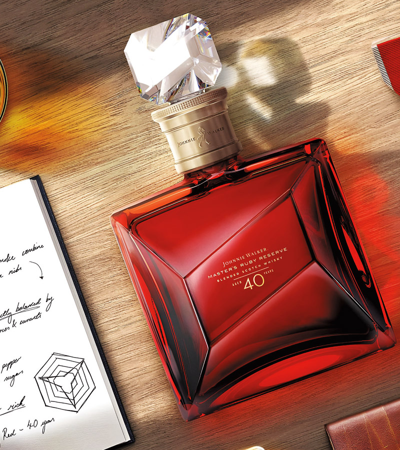 Para celebrar cuatro décadas de pasión por el whisky, Johnnie Walker presenta una joya exclusiva: Master’s Ruby Reserve. Esta edición limitada fue creada con whiskies que han reposado al menos 40 años en barricas de roble, seleccionados por un equipo de expertos mezcladores. Entre ellos se encuentran expresiones de destilerías legendarias ya cerradas, como Cambus, Pittyvaich y Port Ellen, junto con rarezas de Talisker y Cragganmore. Solo existen 398 botellas en el mundo, un homenaje líquido a la historia y excelencia de esta casa.
