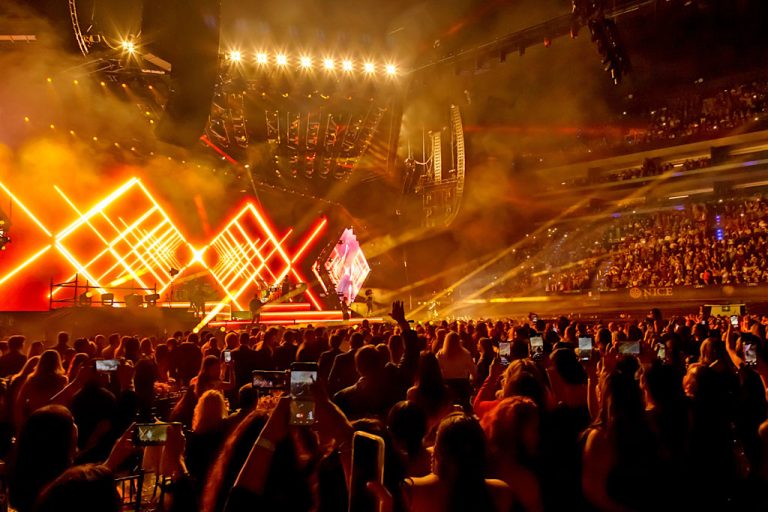El espectáculo, realizado en la Arena Guadalajara, comenzó después de las 9:00 de la noche y destacó por sus efectos visuales generados con pantallas, láseres y pirotecnia.